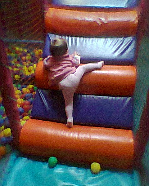 Smugly doing the train down the click-clack track at one of the local children's centers. These places are stay-and-play areas, open in the afternoons, geared toward preschool children under the age of 5. The Libdem/Tory coalition have cut funding for many of these places.